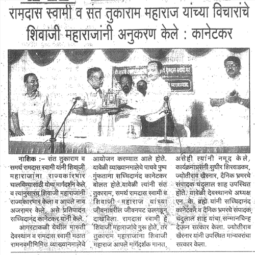 रामदास स्वामी व संत तुकाराम महाराज यांच्या विचारांचे शिवाजी महाराजांनी अनुकरण केले : श्री. सच्चिदानंद (सचिन) कानेटकर