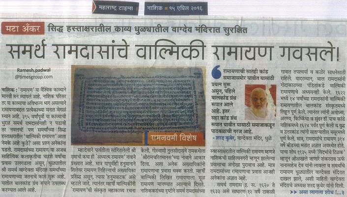 समर्थ रामदासांचे वाल्मिकी रामायण गवसले!