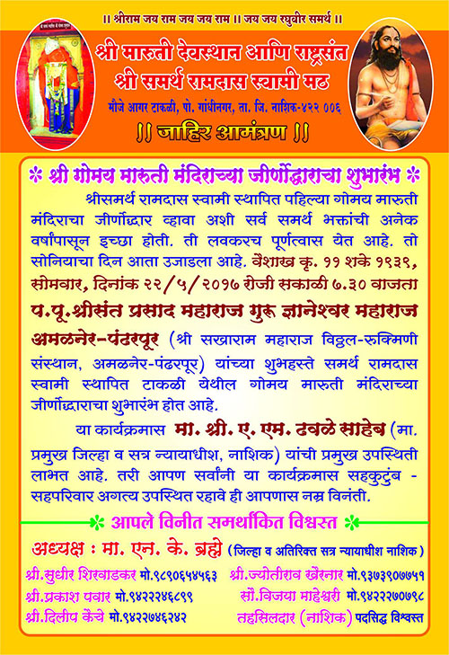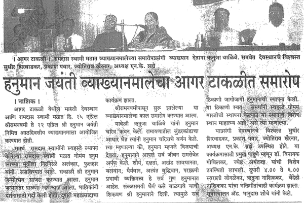 विषय:- "श्री समर्थ स्थापित मारुती" या विषयावर प्रवचन