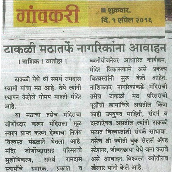 'मटा' हेरिटेज वॉक समर्थांच्या टाकळीत !