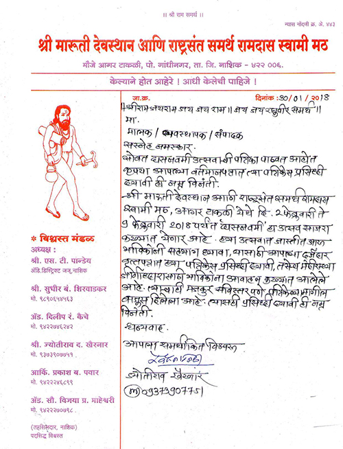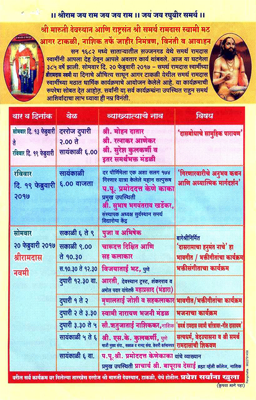 श्री समर्थ रामदास स्वामी , आगर टाकली, नाशिक.