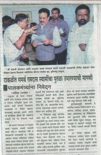 टाकळीत समर्थ रामदास स्वामींचा पुतळा उभारण्याची मागणी पालक मंत्र्याकडे निवेदन