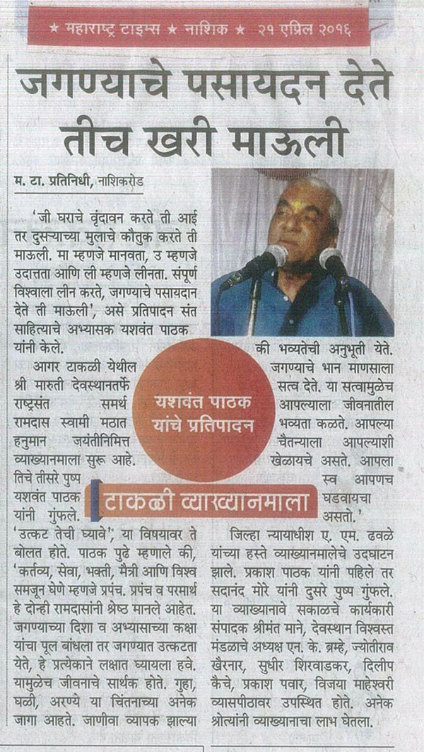 व्याख्यान - तिसरे विचार पुष्प - श्री. यशवंत पाठक