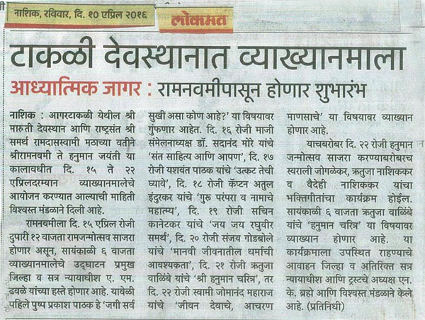विषय - श्री हनुमान चरित्र, टाकळी देवस्थानचे महत्व