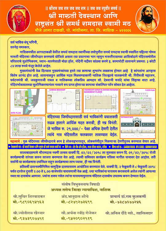 यास्तव आपणास नम्र विनंती करण्यात येते की, आपल्याकडे जय मंदिराचे अथवा परिसराचे पूर्वीचे फोटो अथवा माहिती असेल तर देवस्थानच्या वरील पत्त्यावर किंवा ’श्रीज्योती’ बुक सेलर्स अॅंड स्टेशनर, जीवनछाया, मुरकुटे कॉलनी, गंगापूर रोड, नाशिक या पत्त्यावर जमा करावीत.