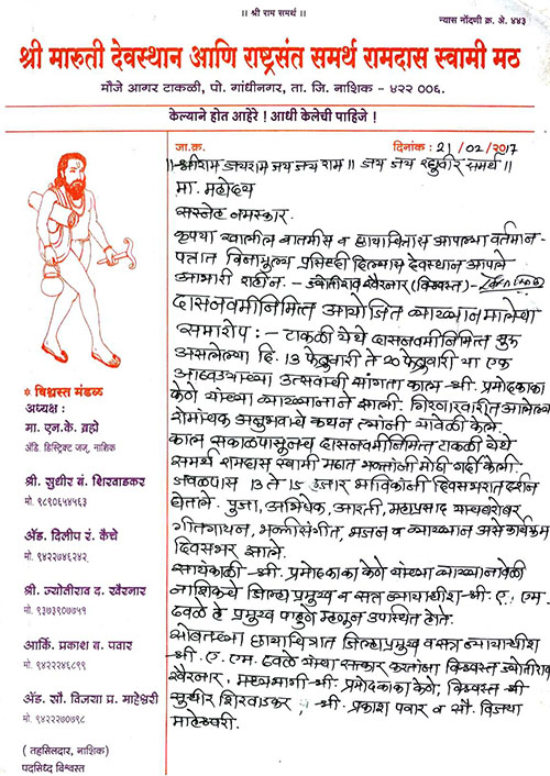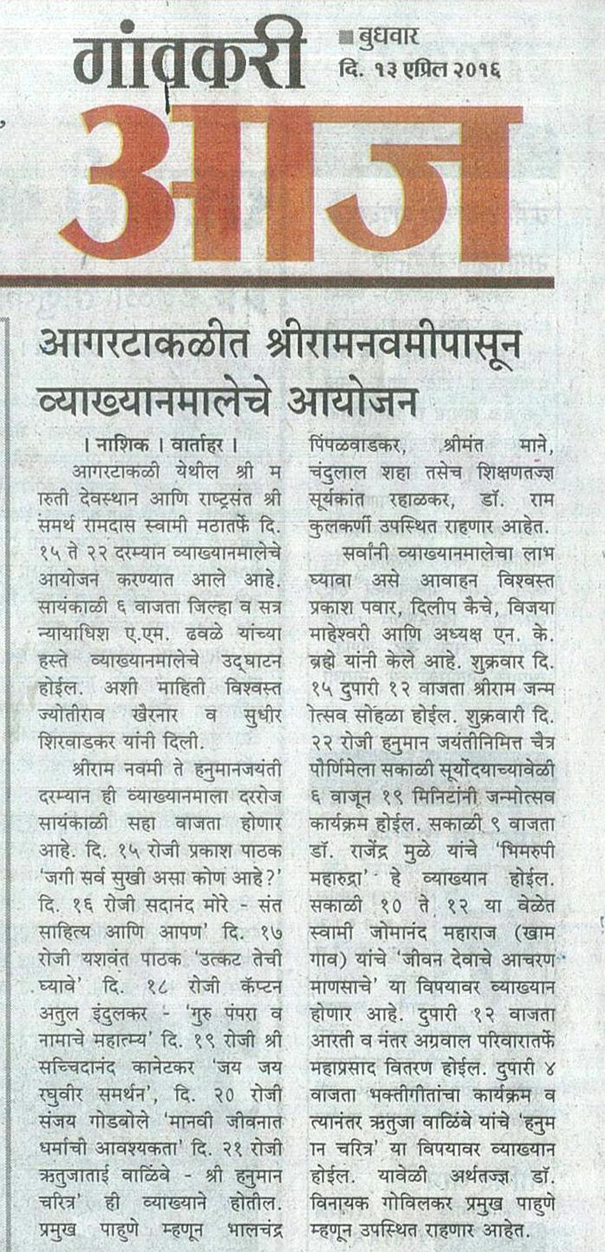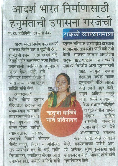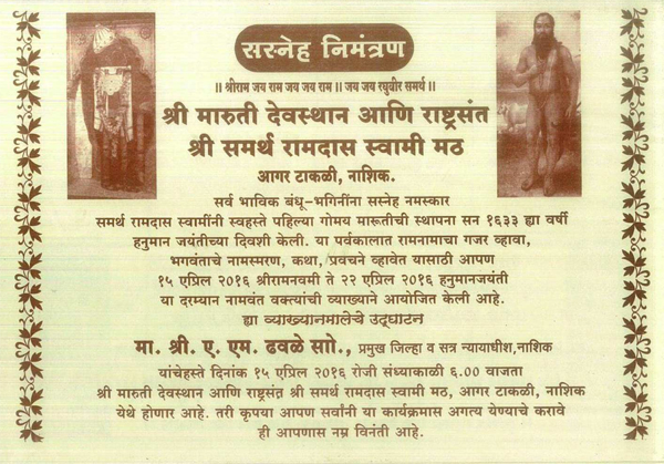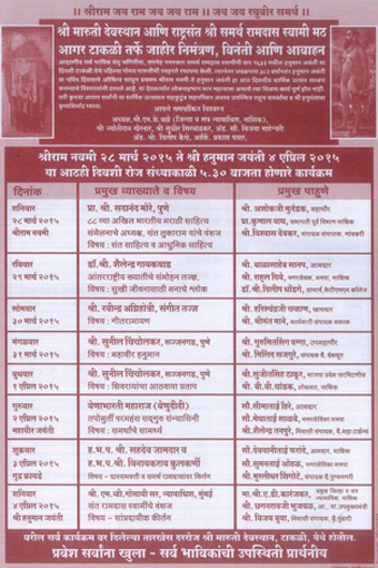 विषय:- "श्री समर्थ स्थापित मारुती" या विषयावर प्रवचन