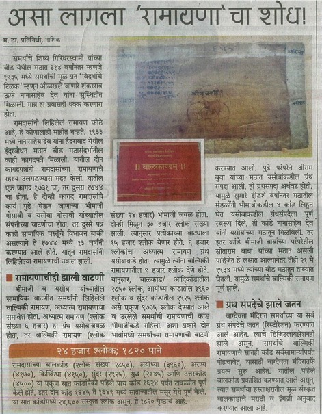 समर्थ रामदासांचे वाल्मिकी रामायण गवसले!