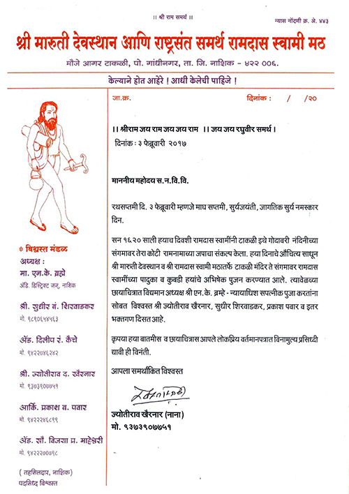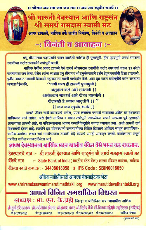 श्री समर्थ रामदास स्वामी , आगर टाकली, नाशिक.