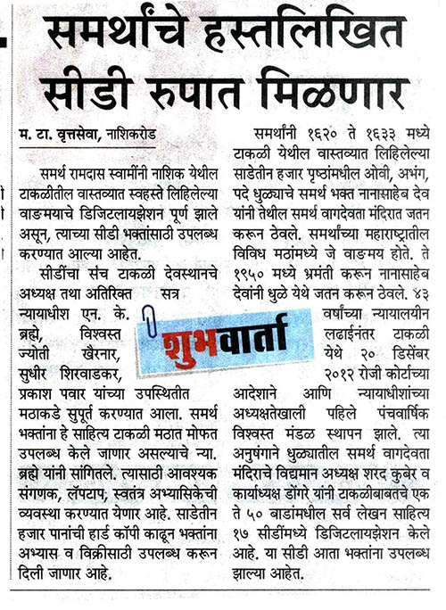 समर्थांच्या हस्तलिखित सीडी रूपात मिळणार.