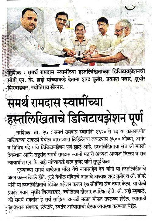 समर्थ रामदास स्वामींनी स्वहस्ते लिहिलेल्या वाड्मयाचे डिजिटलायझेशन पूर्ण.