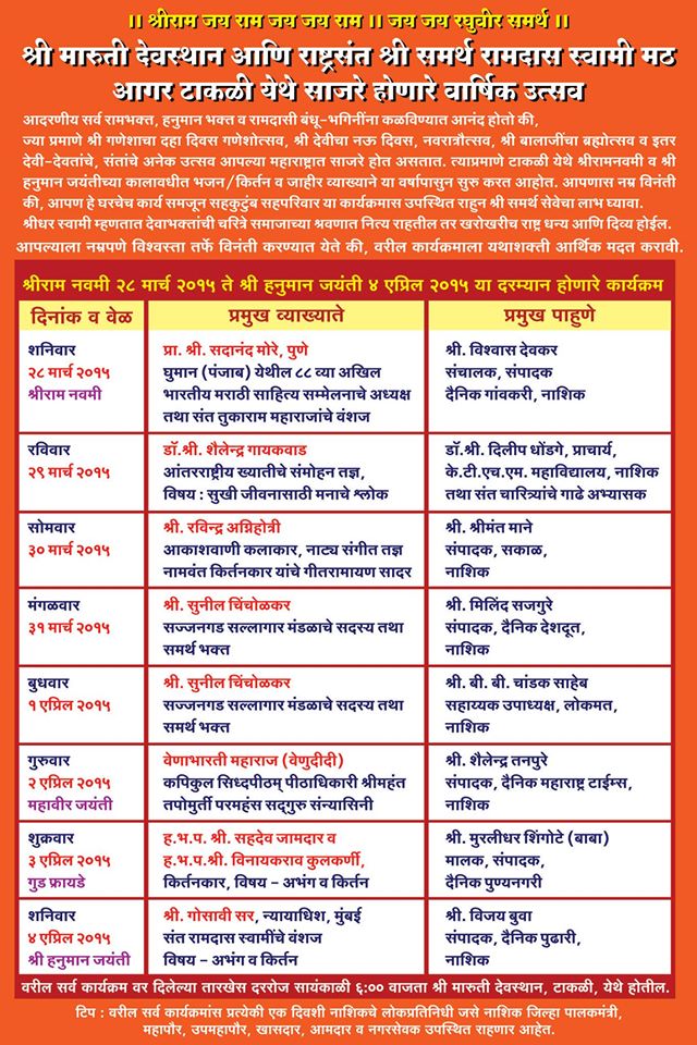श्री समर्थ रामदास स्वामी मठ आगर टाकळी येथे साजरे होणारे वार्षिक उत्सव