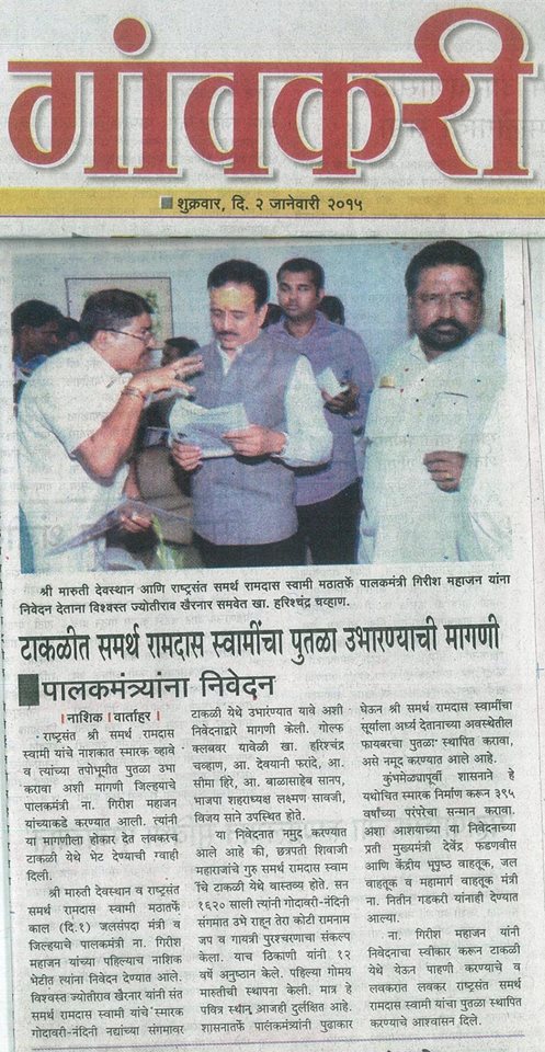 टाकळीत समर्थ रामदास स्वामींचा पुतळा उभारण्याची मागणी पालक मंत्र्याकडे निवेदन