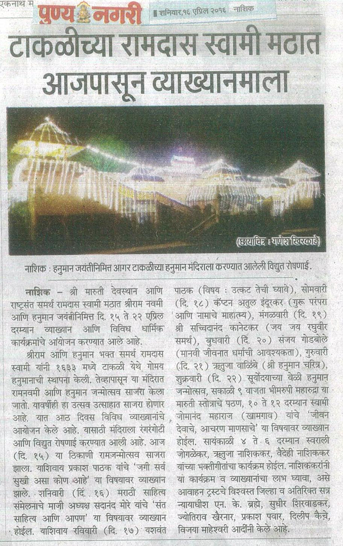 विषय - श्री हनुमान चरित्र, टाकळी देवस्थानचे महत्व